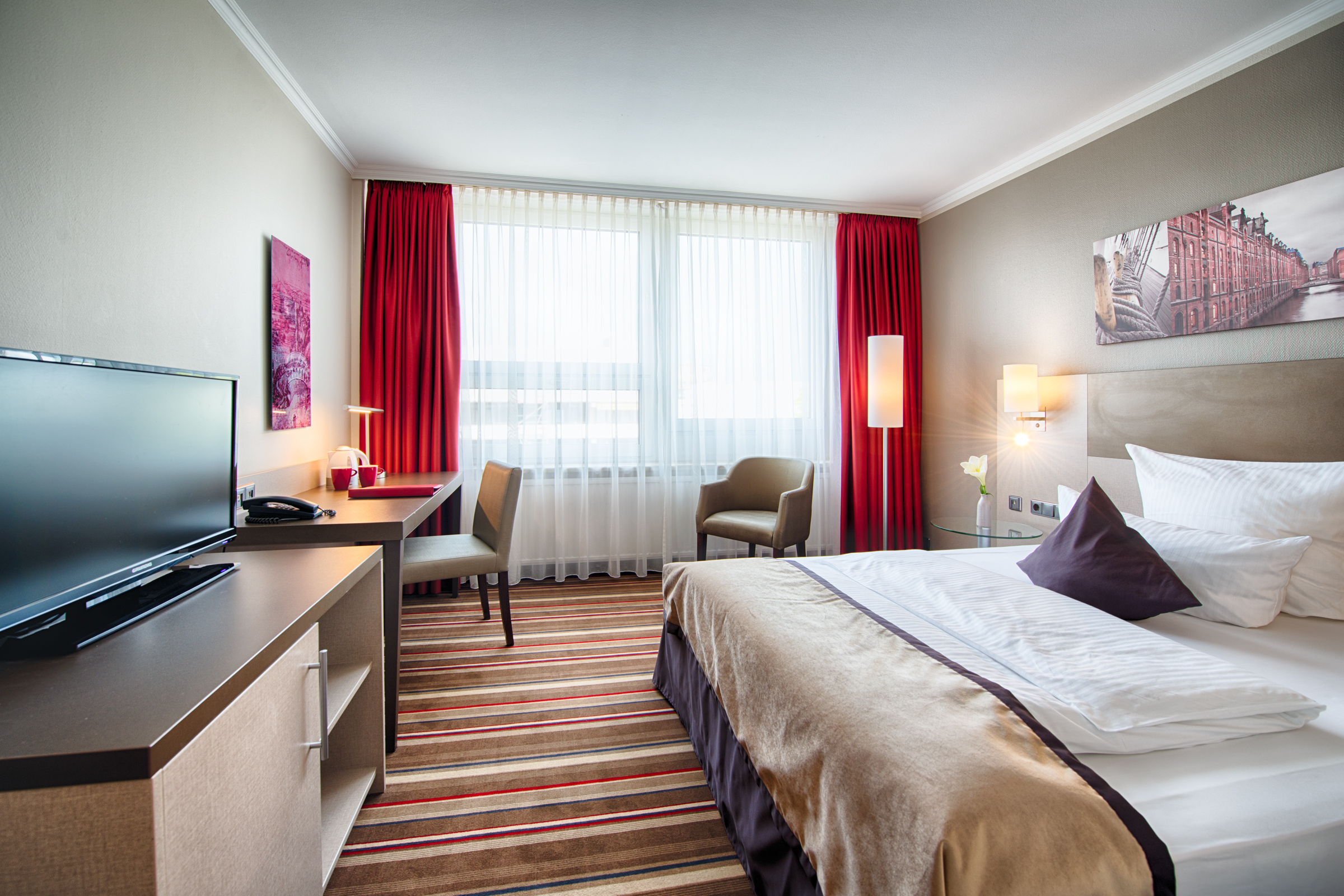 Genieße unser großes Super-Breakfast-Buffet mit Kaffee, Säften, Brötchen, Aufschnitt, Obst, Müsli, Eiern, Bacon & Croissants - alles was das Herz begehrt.